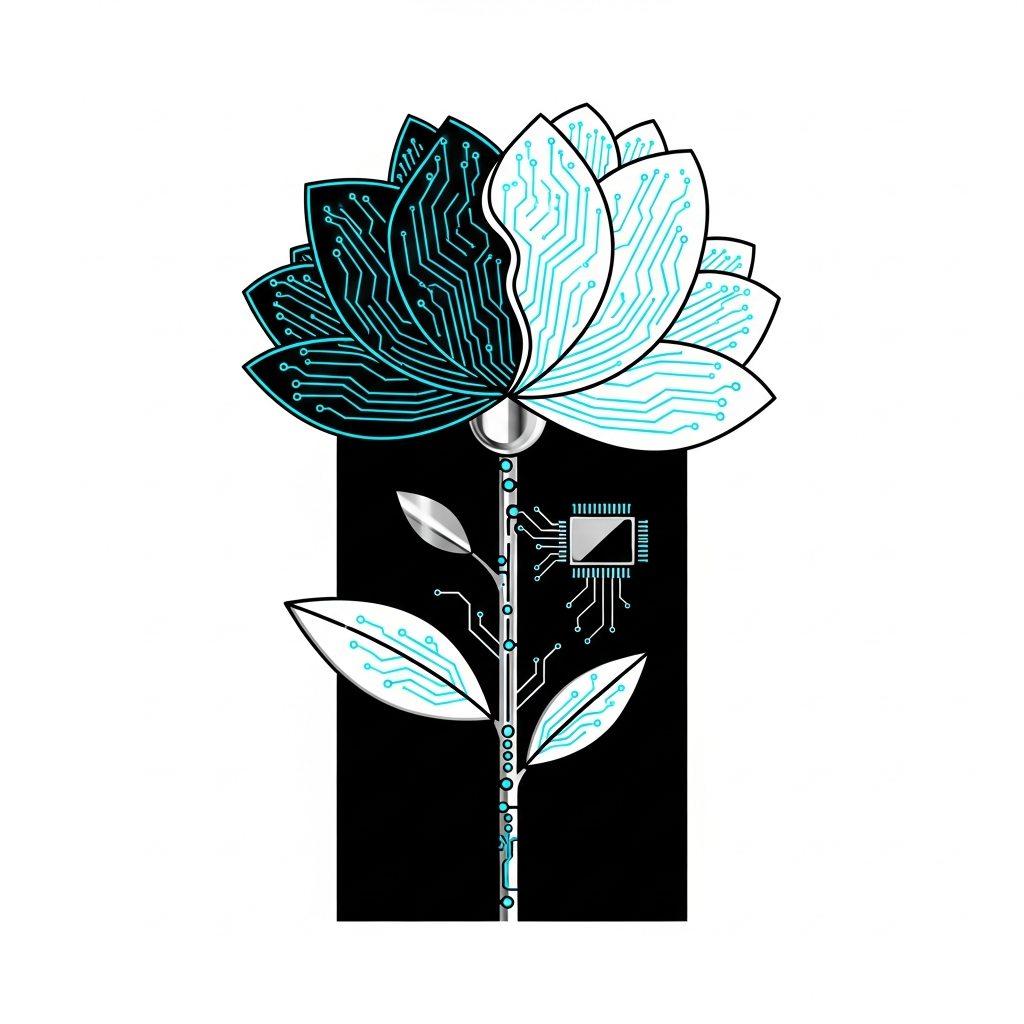 Witness the beautiful symbiosis of nature and technology. This design captures the delicate moment a flower blooms with cybernetic life, representing growth, adaptation, and the future. Wear a piece of tomorrow’s art and express your vision for a world where organic and digital intertwine.
